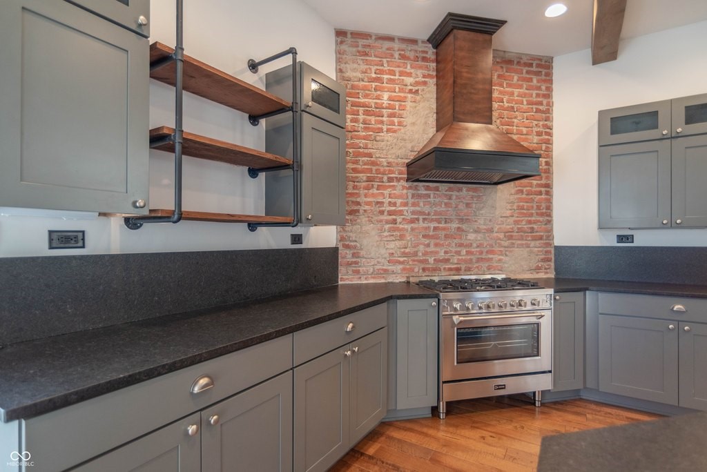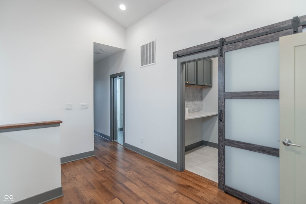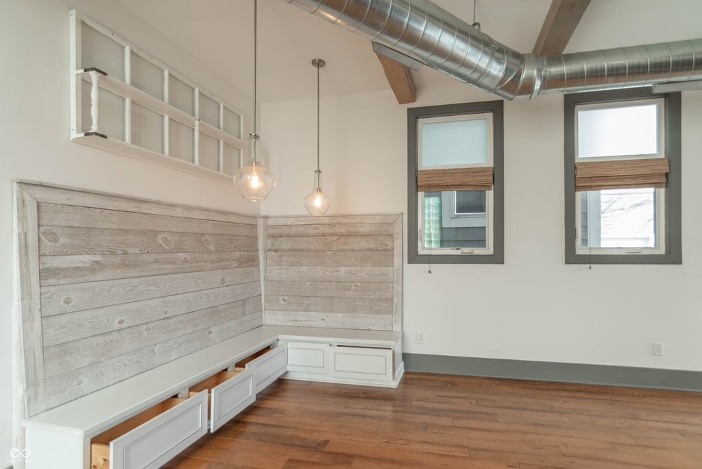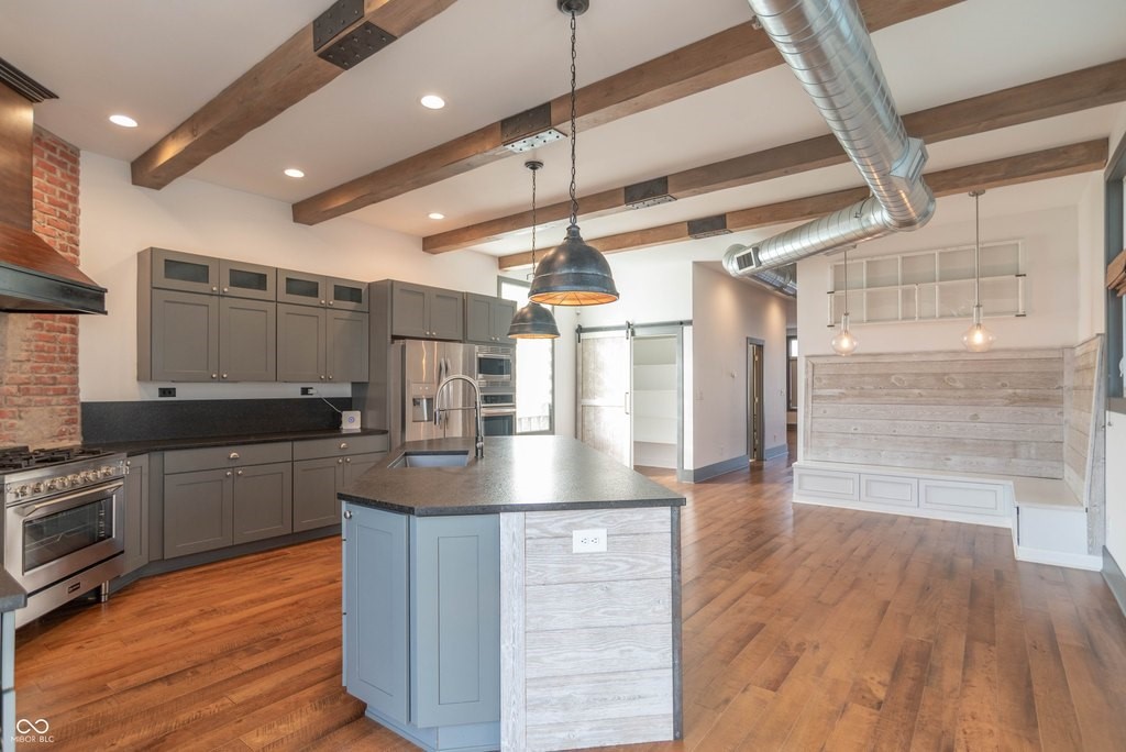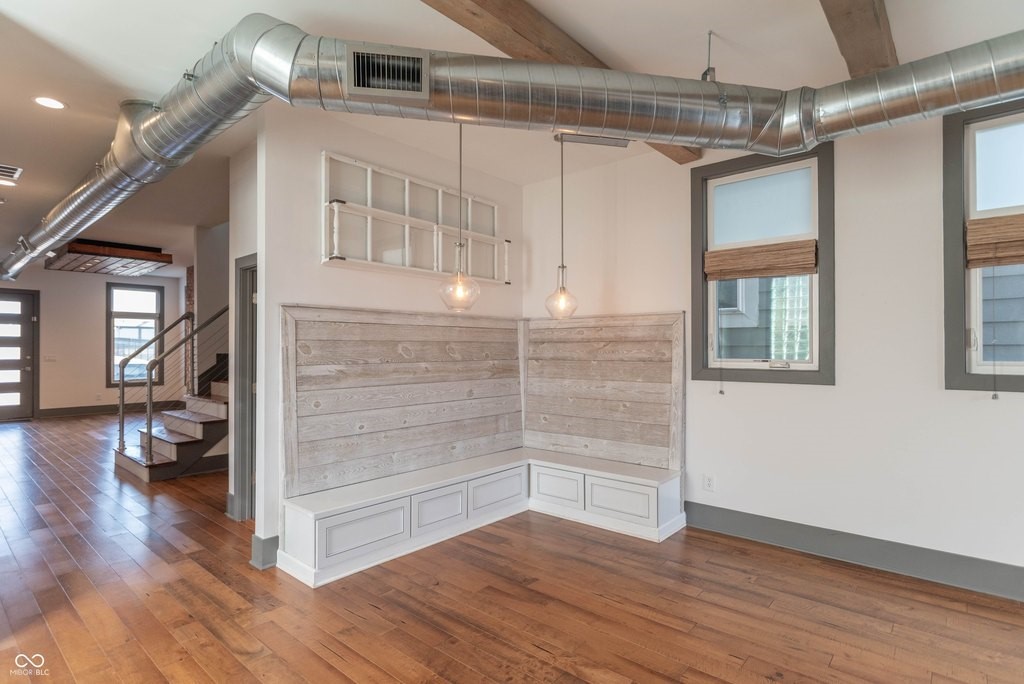 This stunning home is where modern luxury meets the timeless charm of a warehouse loft, with beautifully designed living spaces, featuring soaring ceilings, high-end finishes, and thoughtful upgrades throughout. From the moment you step inside, you'll be captivated by the architectural character. The expansive living area is highlighted by a brick hearth with a sleek electric fireplace. You'll find hand-scraped hardwood flooring throughout the first floor, staircase, and loft, adding warmth and character. Multiple sliding barn doors enhance the modern industrial aesthetic while maximizing space and style.The gourmet kitchen features top-of-the-line stainless steel appliances, a gas range, double ovens, and gorgeous leathered granite countertops. A large center island provides space for bar stool seating, while the custom built-in banquet creates the perfect dining nook-complete with hidden storage drawers and a spacious walk-in pantry. The luxurious primary suite features a sitting area and dedicated office space, ideal for relaxing or working from home. The spa-inspired primary bathroom is elegantly designed with backlit mirrors, a double vanity, and a stunning tiled walk-in shower with glass doors and a rain shower head, creating a resort-style experience. Upstairs you'll also find two more generously sized bedrooms with walk-in-closets and a Jack & Jill bathroom. Step outside to your own private backyard oasis. The fully fenced yard, large deck, and a beautiful gazebo with a dedicated grilling/patio area, make it perfect for any occasion. The immaculate insulated two-car garage is finished with wood wall panels, a metal ceiling with overhead lighting, and garage heater, creating the perfect space. Every inch of this property has been meticulously maintained and thoughtfully designed, offering a perfect blend of industrial-inspired character, modern luxury, and everyday functionality. (Full list of amenities provided upon request.)